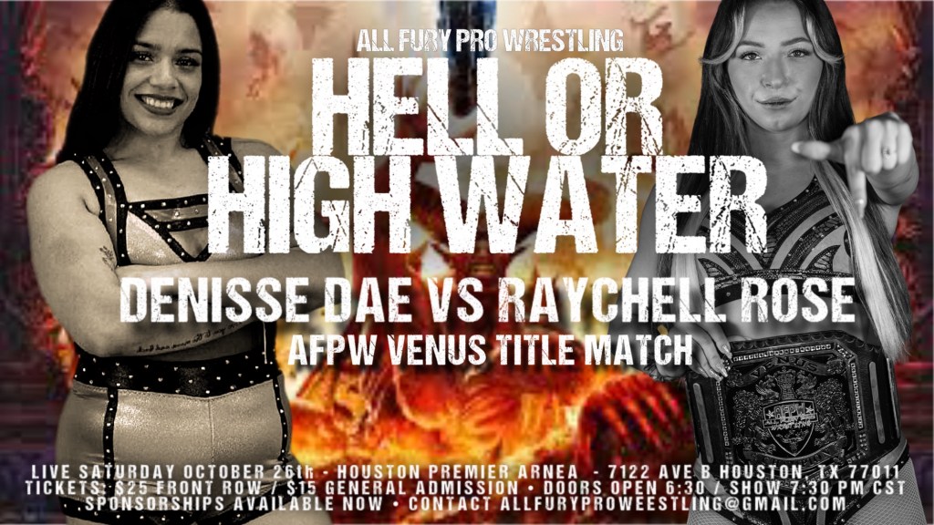 Denisse Dae has been making a name for herself all across the state of Texas, capturing both the APW Queen’s championship and the WSP Women’s championship while making waves in promotions like Mission Pro among others. Now she has a chance to add more gold to her reusme when she challenges Raychell Rose for the Venus Championship at Hell or High Water!